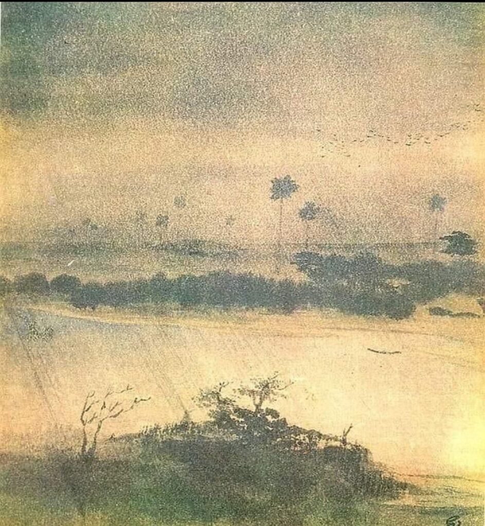 Gaganendranath Tagore, “Rainy Season”, Wash and Tempera on Paper.
